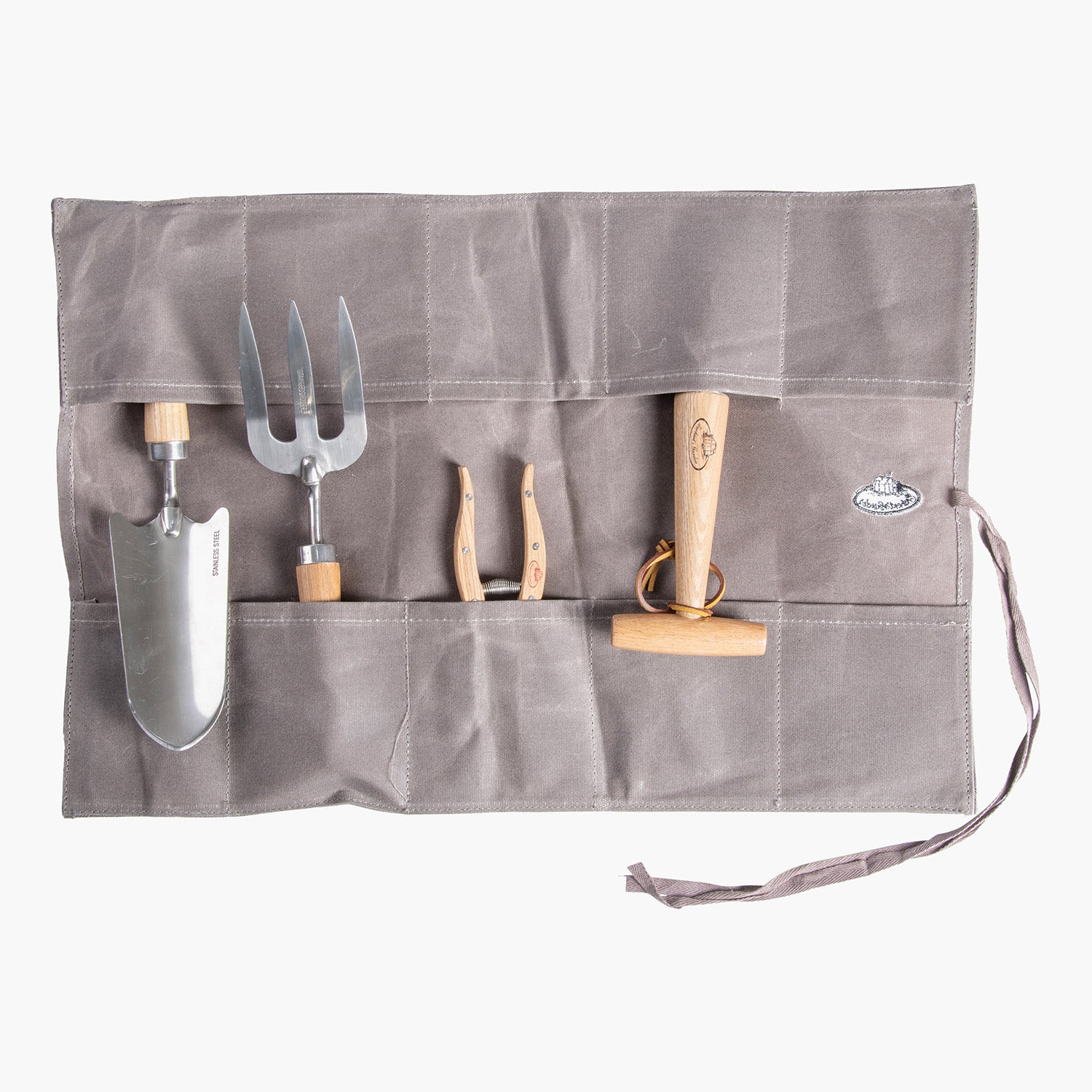 Avec cette toile déperlante, on fabriquait également des vêtements portés par les marins et les pêcheurs. Elle est devenue extrêmement populaire grâce à sa durabilité et à sa robustesse. Cet étui est un véritable indispensable pour le jardinage et dispose de grands compartiments pour ranger les outils de jardin. Facile à transporter grâce à sa poignée.