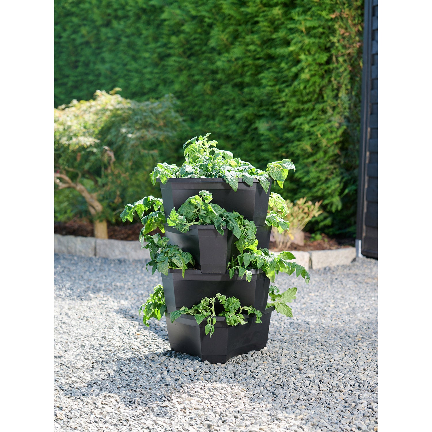 La tour de culture est une jardinière verticale, parfaite pour cultiver des pommes de terre, des herbes aromatiques ou d’autres petites plantes. Grâce à son design en tour ingénieux, vous pouvez planter sur plusieurs niveaux sur une petite surface, idéal pour les petits jardins ou les balcons.