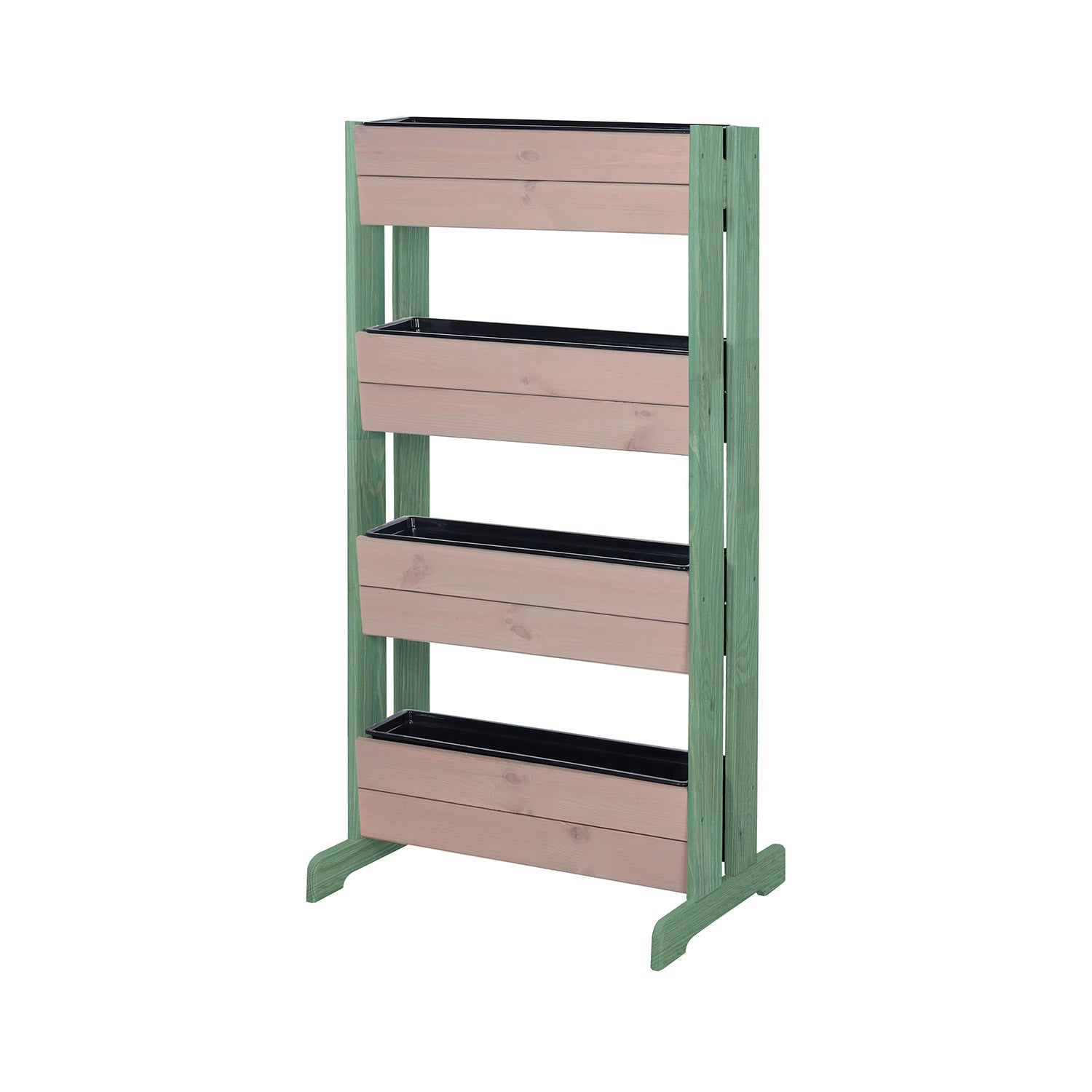 Idéal pour un balcon ou un petit jardin. Ce jardin vertical tendance à 4 niveaux prend peu de place, tout en pouvant accueillir de nombreuses plantes. Dans les bacs, vous cultivez facilement des herbes aromatiques ou des fraises, mais vous pouvez bien sûr aussi les garnir joliment de plantes retombantes.