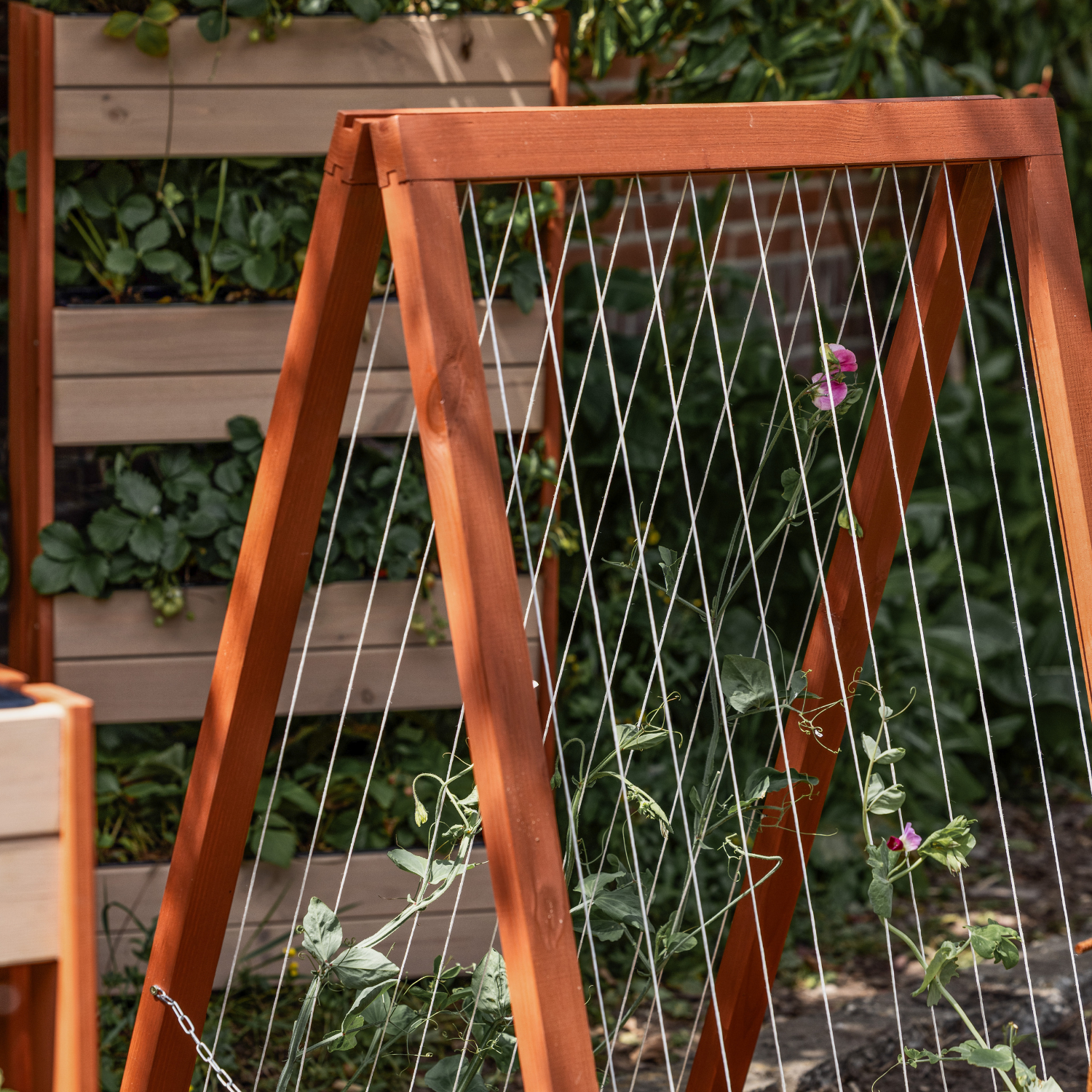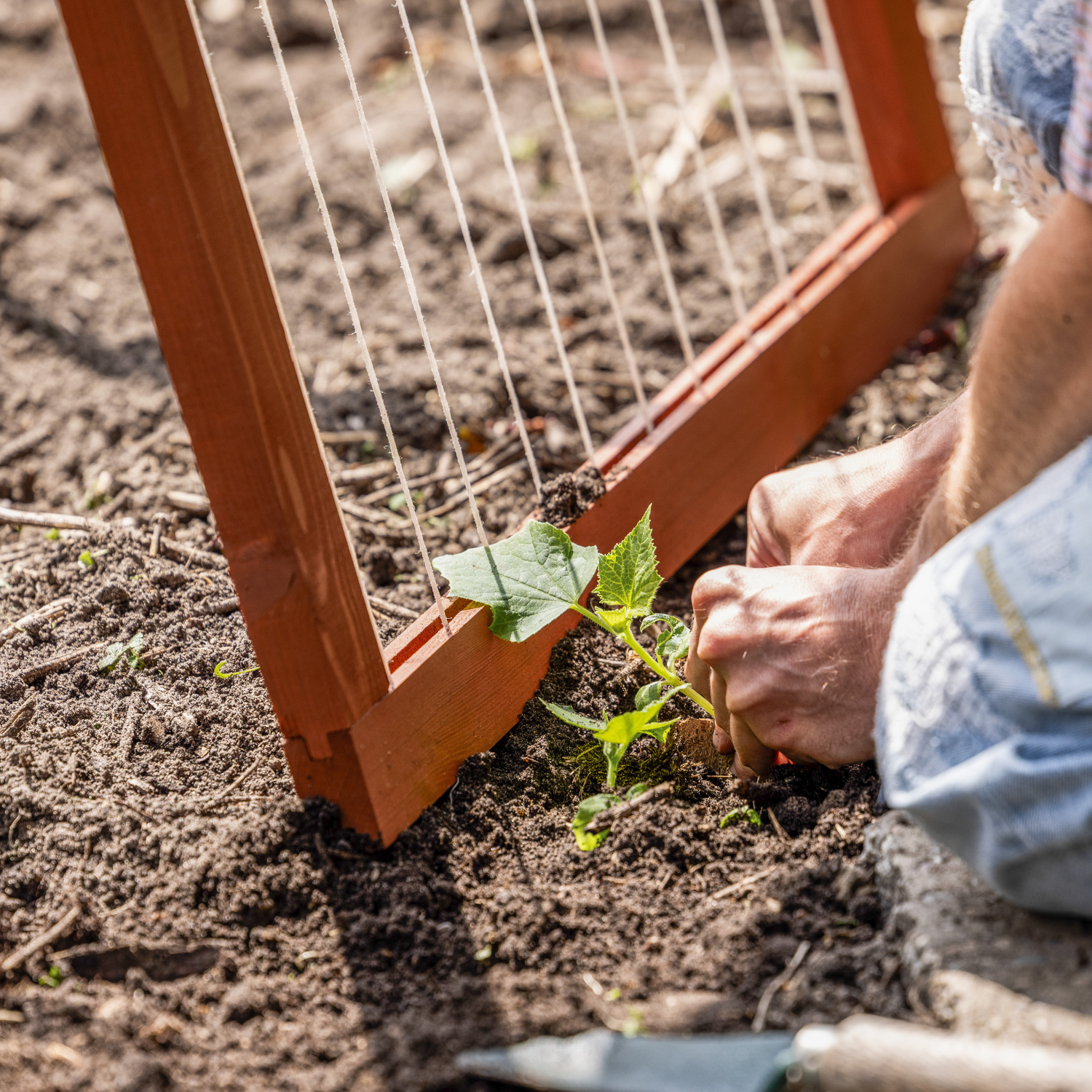 L’utilisation du treillis est simple et rapide. Dépliez le treillis à la largeur souhaitée. Placez-le ensuite derrière ou à côté de la plante et guidez délicatement les vrilles ou les tiges à travers la corde. Bien entendu, vous pouvez aussi d’abord installer le treillis, puis repiquer votre plant contre le treillis. À mesure que la plante grandit, elle peut s’y accrocher davantage, ce qui évite d’avoir besoin de ficelles ou de matériaux d’attache séparés. Après la récolte ou la floraison, le treillis peut être replié de manière compacte et rangé pour la saison suivante.