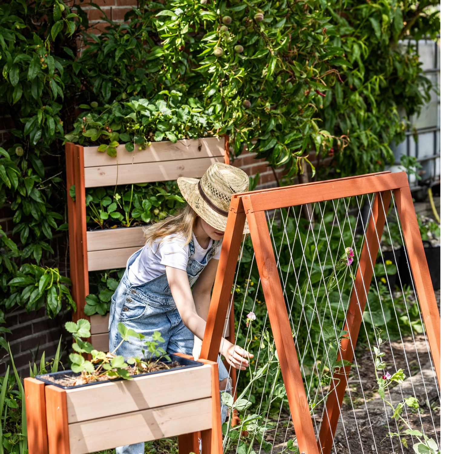 Idéal pour un balcon ou un petit jardin. Ce jardin vertical tendance à 4 niveaux prend peu de place, tout en pouvant accueillir de nombreuses plantes. Dans les bacs, vous cultivez facilement des herbes aromatiques ou des fraises, mais vous pouvez bien sûr aussi les garnir joliment de plantes retombantes.