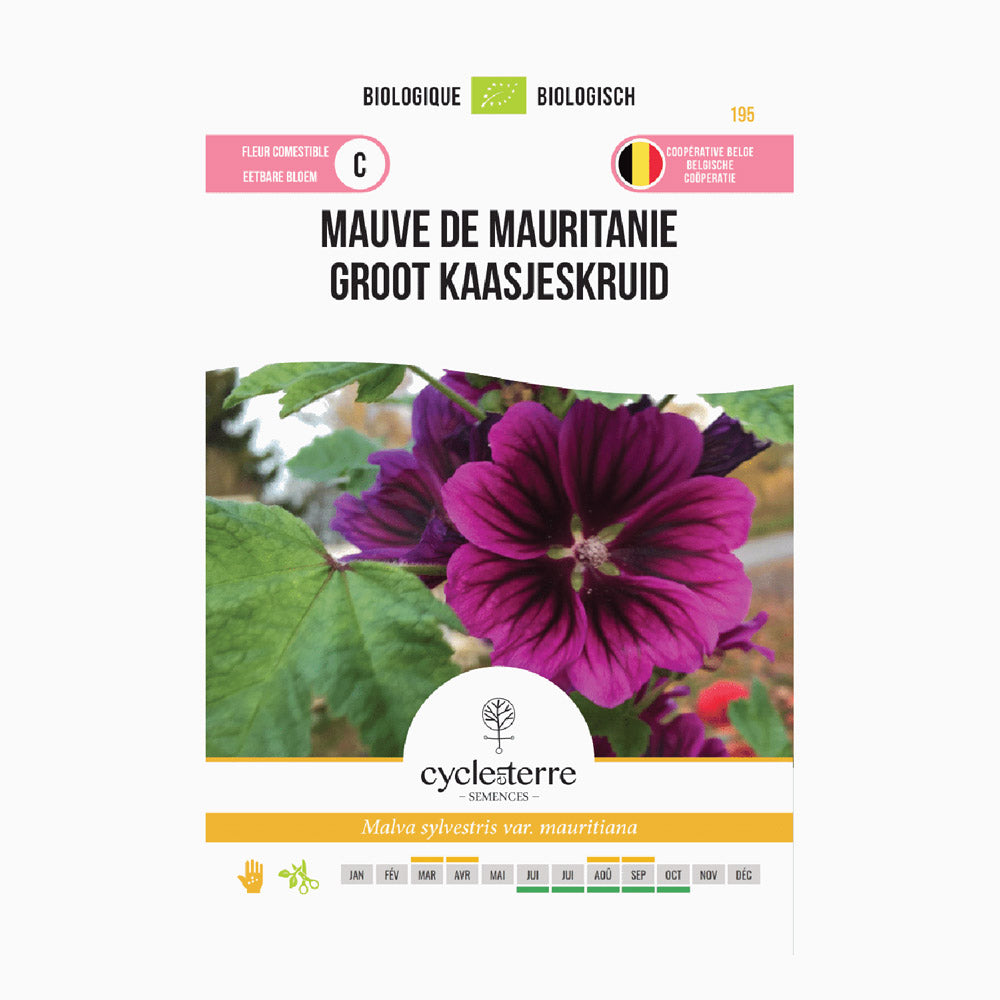 Les fleurs de la mauve ‘Mauritanie’ ont une couleur profonde, pourpre foncé, et fleurissent tout l’été. Avec une hauteur de 80 à 120 cm. Semez les graines en avril-mai ou en août-septembre directement en pleine terre, ou faites des semis en pots. Les jeunes plants peuvent être repiqués en respectant un espacement de 40 cm entre les plants. La mauve pousse bien au soleil ou à mi-ombre et est peu exigeante quant au sol, à condition que celui-ci soit bien drainé.