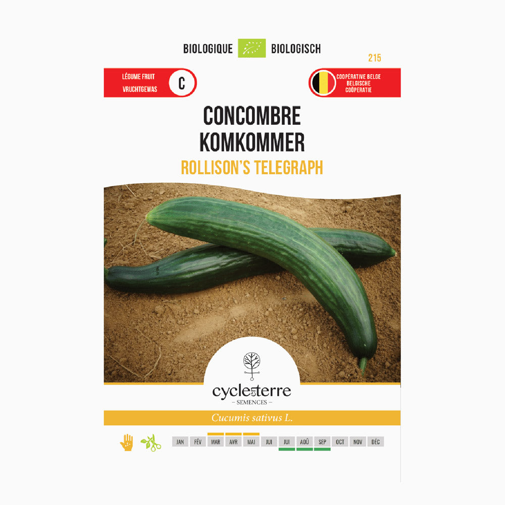 Le concombre « Rollison's Telegraph » est une variété classique de concombre, appréciée depuis des décennies pour ses fruits impressionnants, très longs, de 30 à 40 cm. Ces concombres verts à peau lisse offrent une chair blanche, ferme et juteuse.