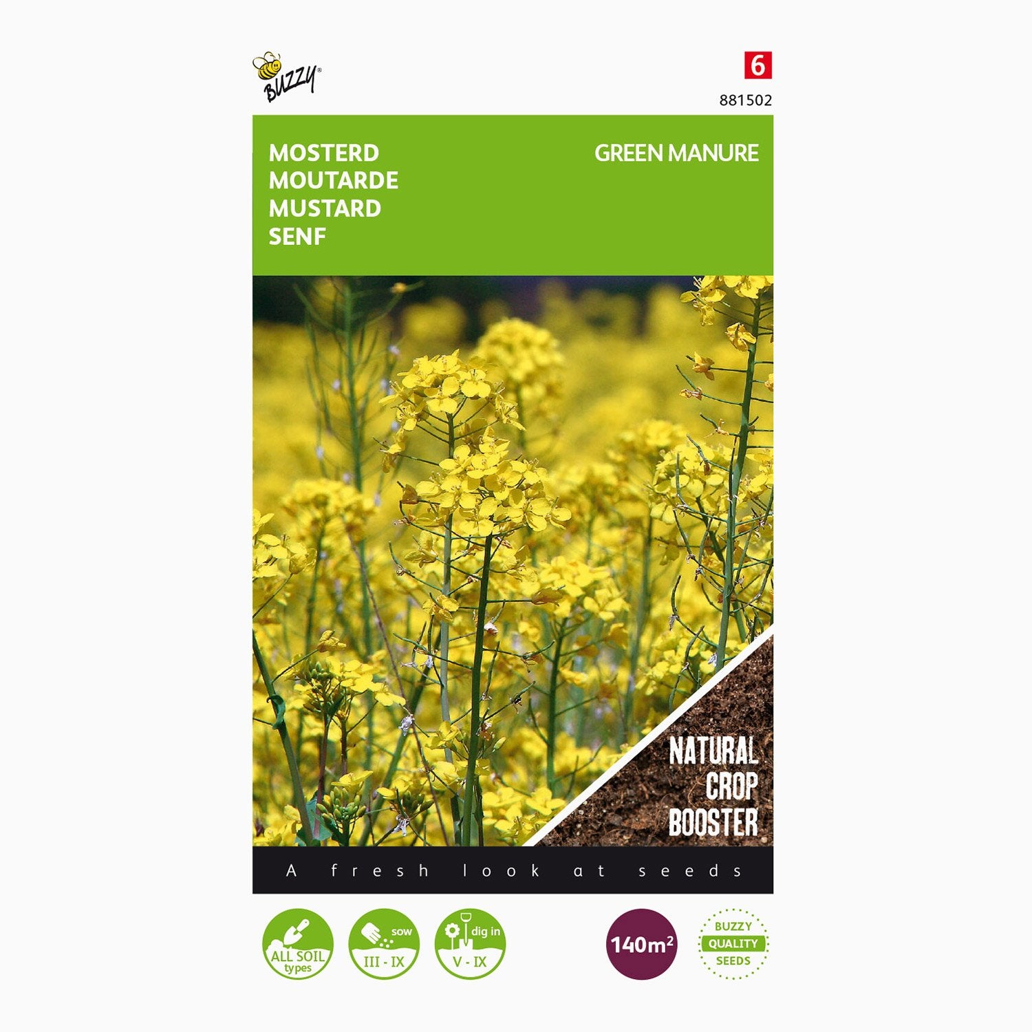 Le cycle de croissance de la moutarde jaune commence au début du printemps, lorsque les graines sont semées. La plante se développe bien à des températures plus fraîches et pousse rapidement, ce qui en fait un excellent choix pour une culture de début de saison. La moutarde jaune est réputée pour fleurir vite, généralement dans les 4 à 6 semaines suivant le semis, selon les conditions de culture. Les fleurs contribuent à la valeur esthétique de la plante et attirent les pollinisateurs. À l’approche de l’été, la moutarde jaune peut être enfouie ou fauchée afin d’enrichir le sol en matière organique et en nutriments.