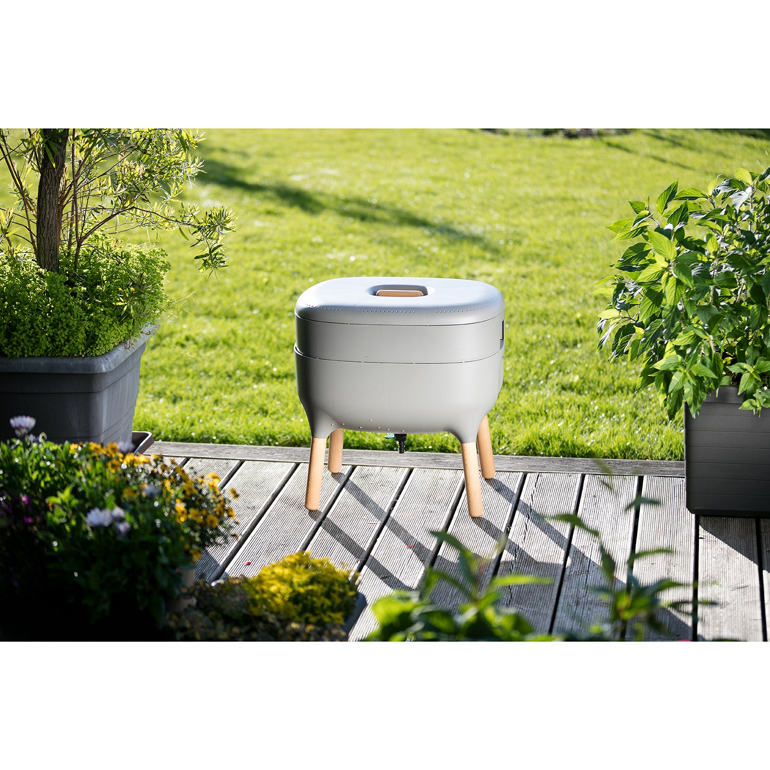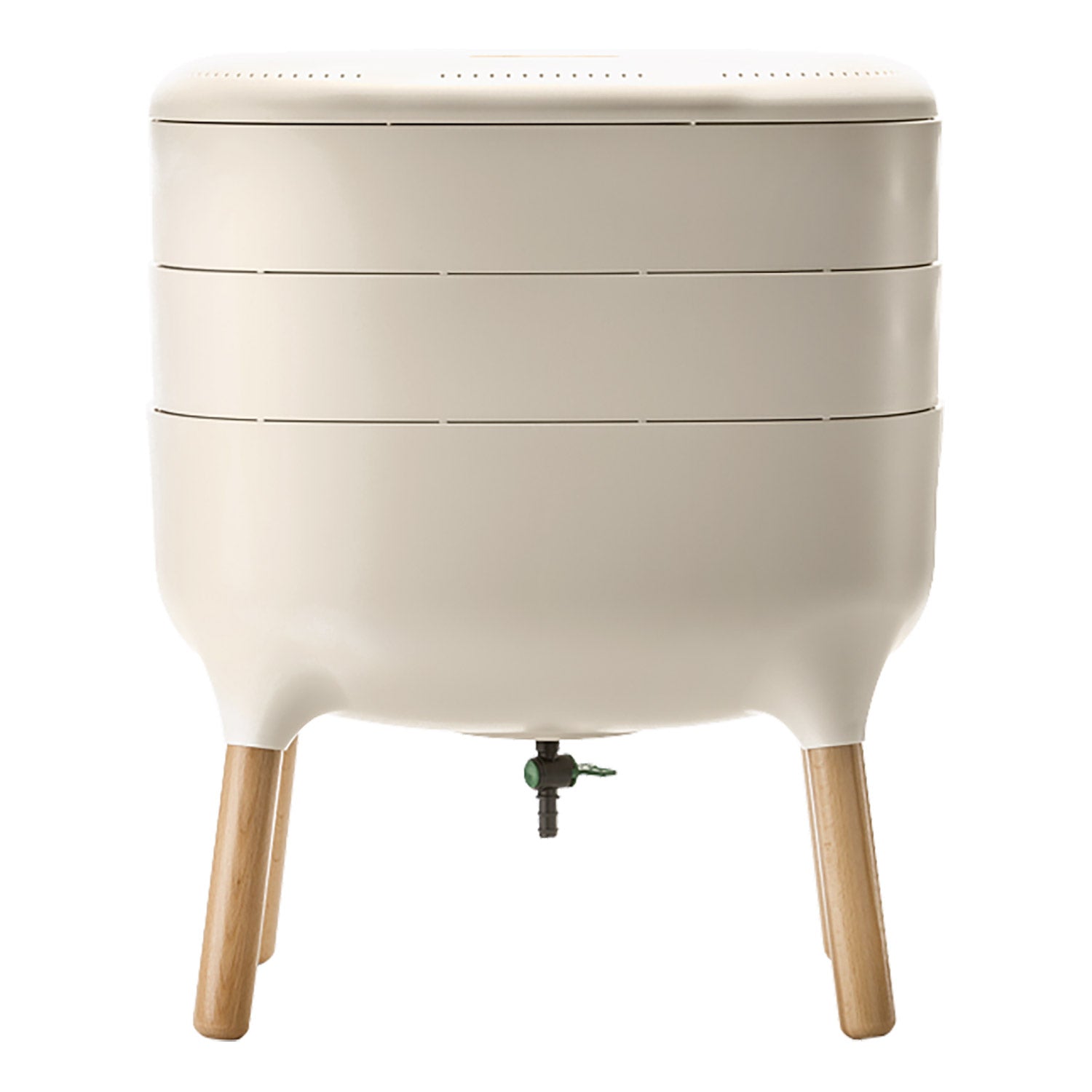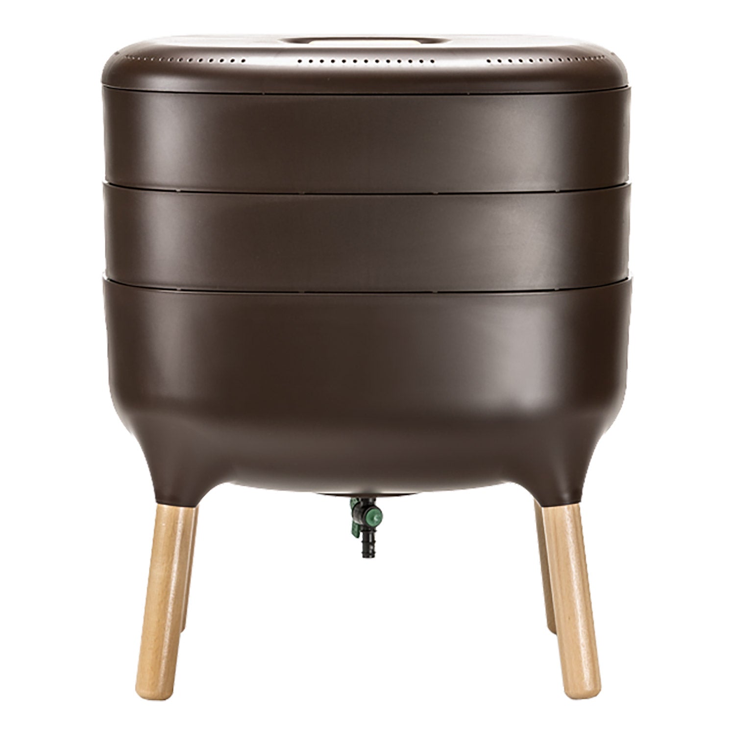 Ce modèle en particulier est équipé d’un petit robinet sur la partie inférieure : vous pouvez ainsi laisser s’écouler facilement le « thé de vers » et fournir directement de l’engrais à vos plantes. Les vers doublent leur population tous les trois mois : il y a ainsi toujours suffisamment de vers dans le composteur.