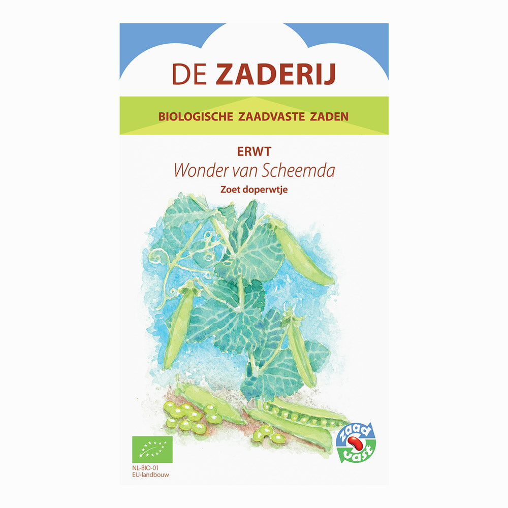 Le Wonder van Scheemda est un pois à écosser classique, biologique, doté d’une riche histoire et d’une excellente saveur. Cette variété groningoise a été développée au début du siècle dernier par la maison semencière Zwaan & De Wiljes à Scheemda, et s’est depuis imposée comme une variété fiable et appréciée au potager. Les plantes atteignent environ soixante à soixante-dix centimètres de hauteur et produisent des gousses bien remplies, vert foncé, aux pois doux et tendres.